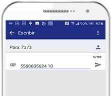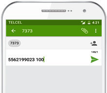 Escribe el número Amigo de Telcel al que deseas enviar el PasaTiempo, deja un espacio en blanco e indica la cantidad sin centavos.